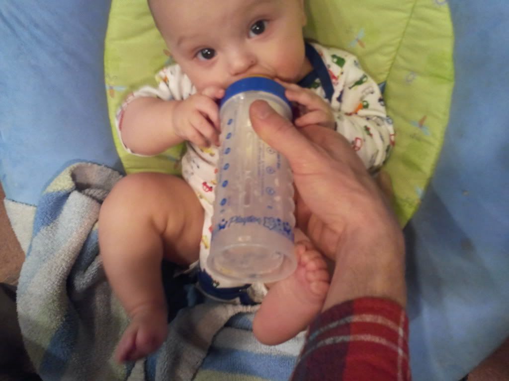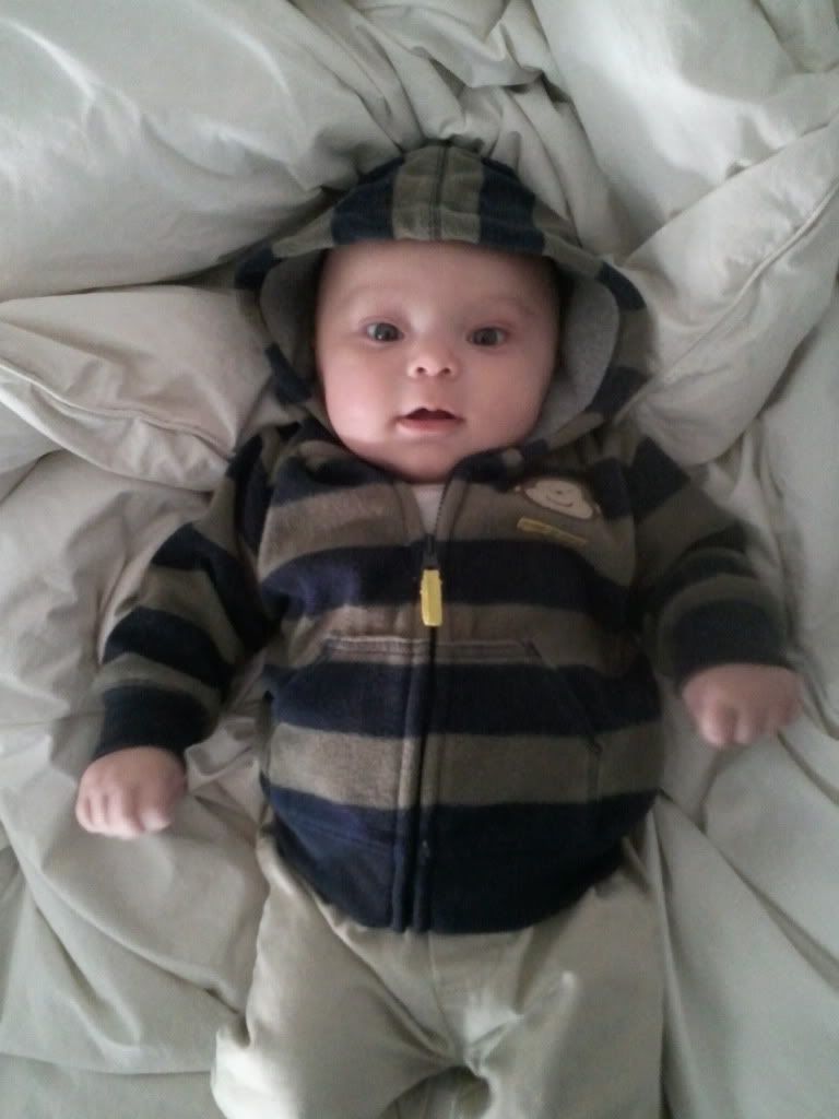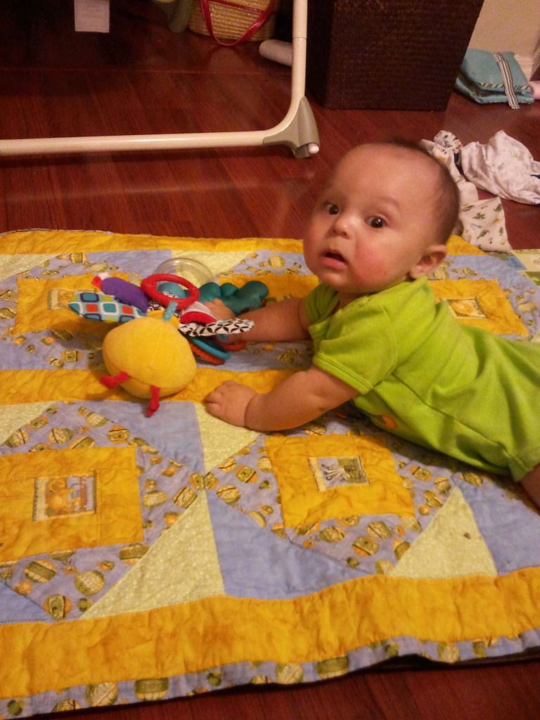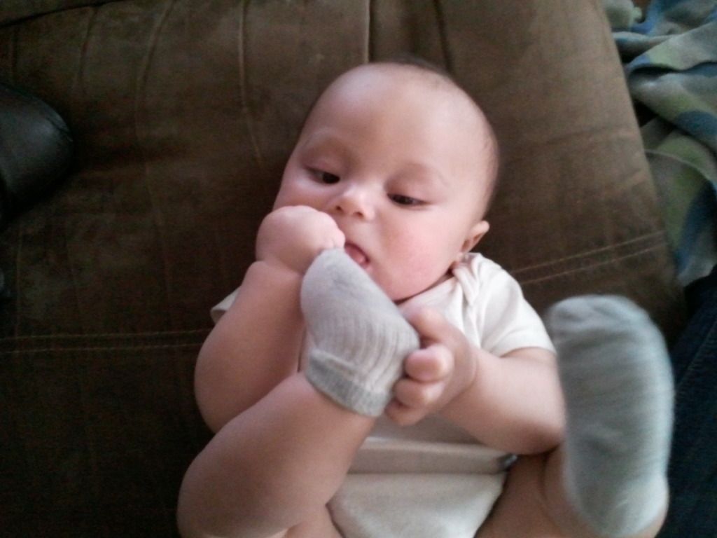 The last couple of weeks has been tough on his little body. He tested positive for Rhinovirus, RSV, and had an ear infection. Then the antibiotics upset his stomach and kept getting diaper rashes. I had to give him breathing treatments and he absolutely hated the nebulizer. On top of all this, he was teething! It was so sad to see him sick! He's better now, still has a nasty cough but is happy again, which makes us happy.